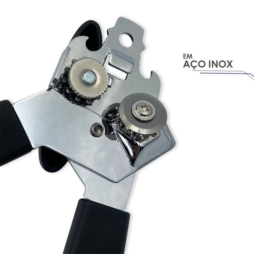 Abridor de latas e garrafas em Aço Inox Produto de alta qualidade com apoio de mãos em plástico resistente. Abra latas de forma prática, rápida e com segurança, super simples de usar. Basta prender o abridor na posição vertical na lateral da lata e girar a manivela em toda circunferência. Abre de forma uniforme, não deixa saliências na tampa, evitando que se machuque. Não precisa de muita força ao rodar a manivela para abrir as latas e garrafas. Feito em aço inox, dá uma maior durabilidade e resistência ao produto.