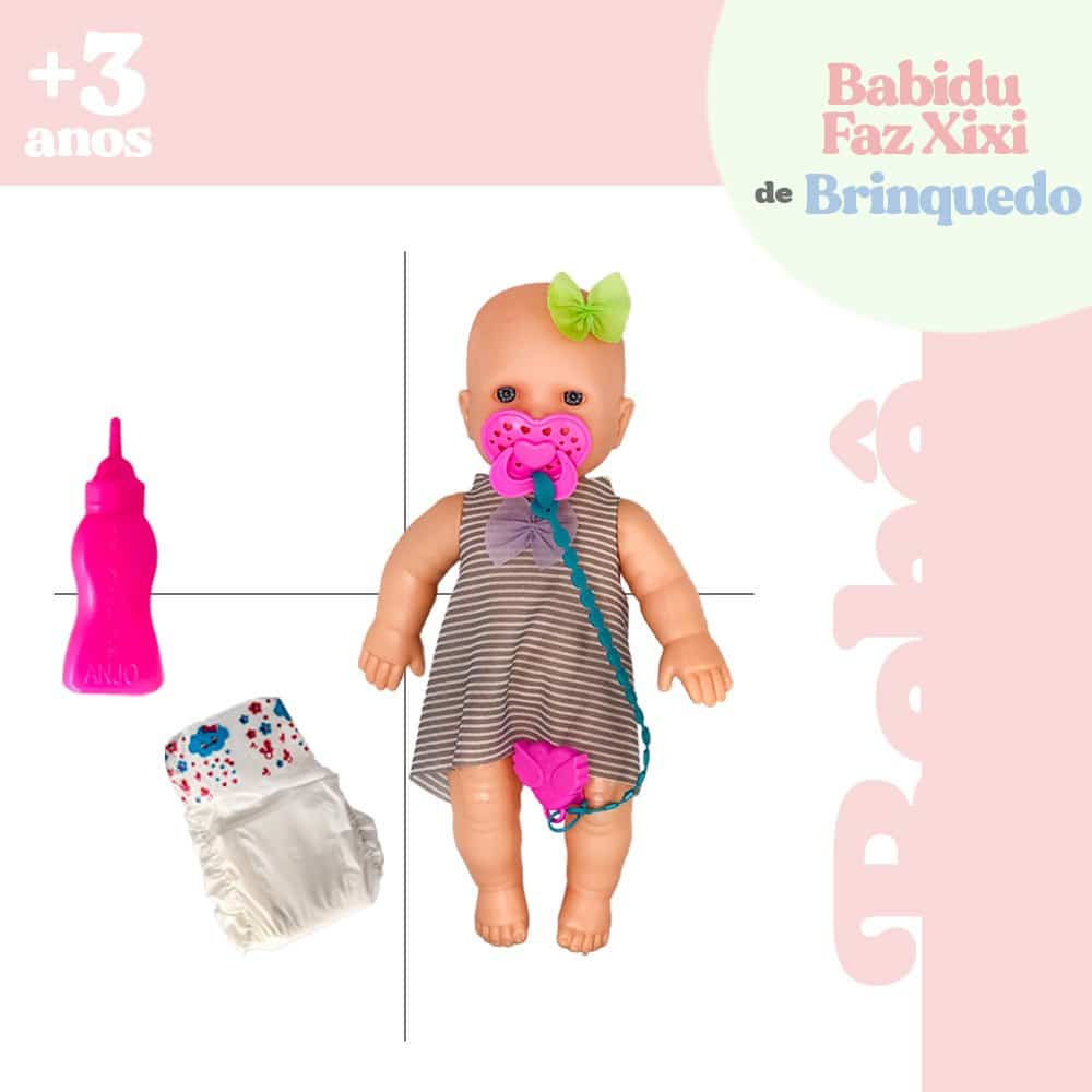 Esta boneca é a companheira perfeita para brincadeiras que ensinam cuidados e responsabilidades de uma forma divertida e envolvente.Com um design fofo, a boneca foi feita para que a criança tenha uma ótima imersão na hora da brincadeira, com um sistema em que quando ela bebe água, ela faz xixi na fraldinha. As crianças vão adorar alimentar a boneca e cuidar dela como se fosse um bebê de verdade, sendo uma maneira incrível de desenvolver habilidades de cuidado, empatia e imaginação enquanto se divertem. Além disso, conta com mamadeira, chupeta e fralda. Feita com materiais de alta qualidade, a boneca possui uma excelente durabilidade, perfeita para ser usada em muitas brincadeiras sem se preocupar com a integridade da boneca A boneca conta com:-01 Mamadeira-01 Fralda-01 Chupeta -Não recomendado para menos de 03 anos por conter partes pequenas que podem sem engolidas ou aspiradas.