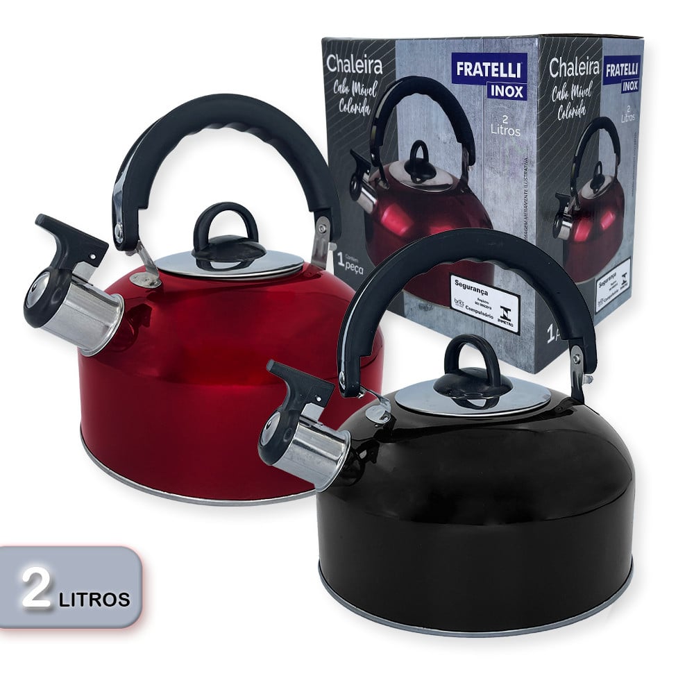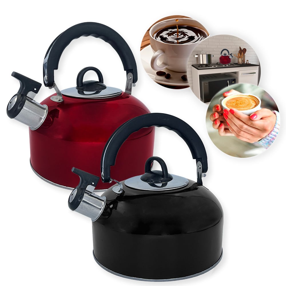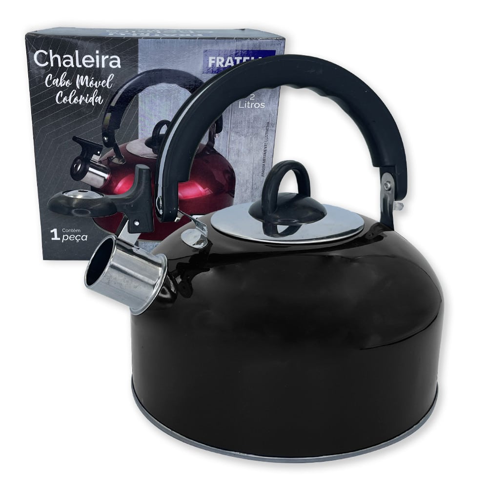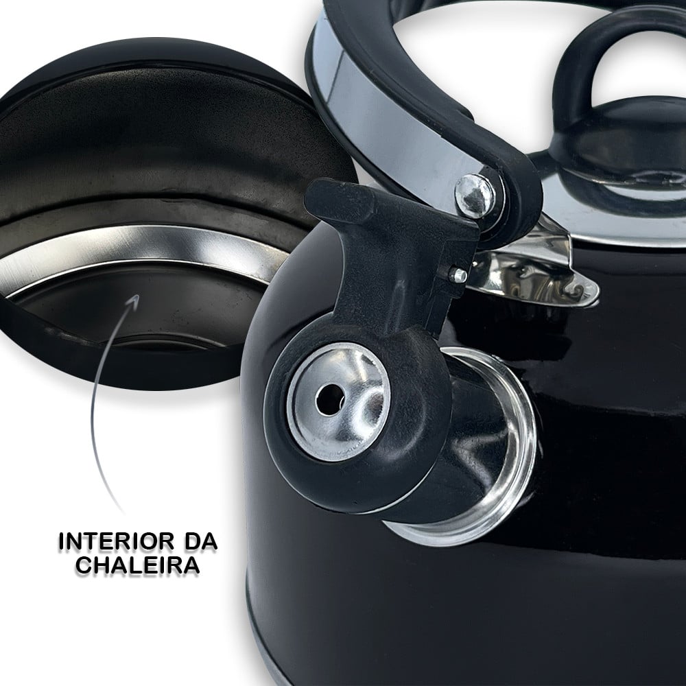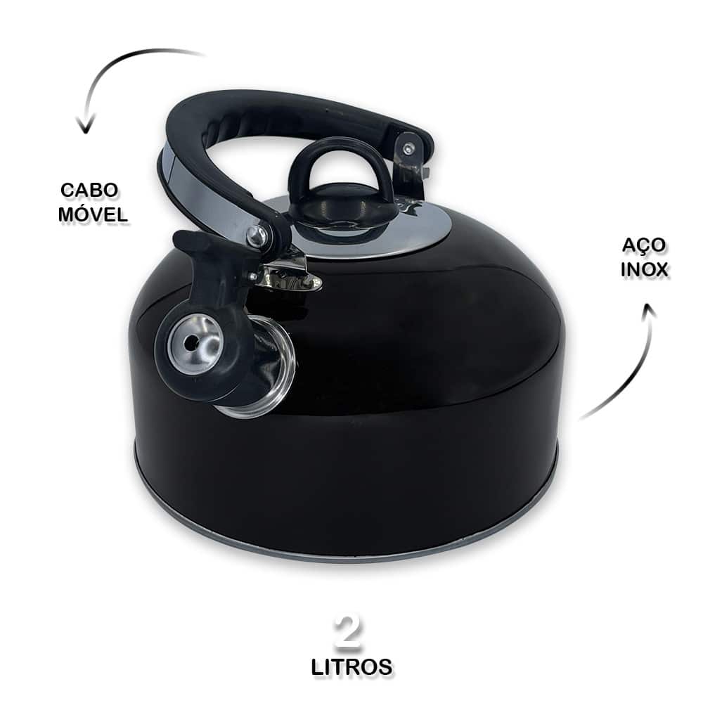 Chaleira Com Tampa E Apito Em Aço Inox 2 Litros – PRETA