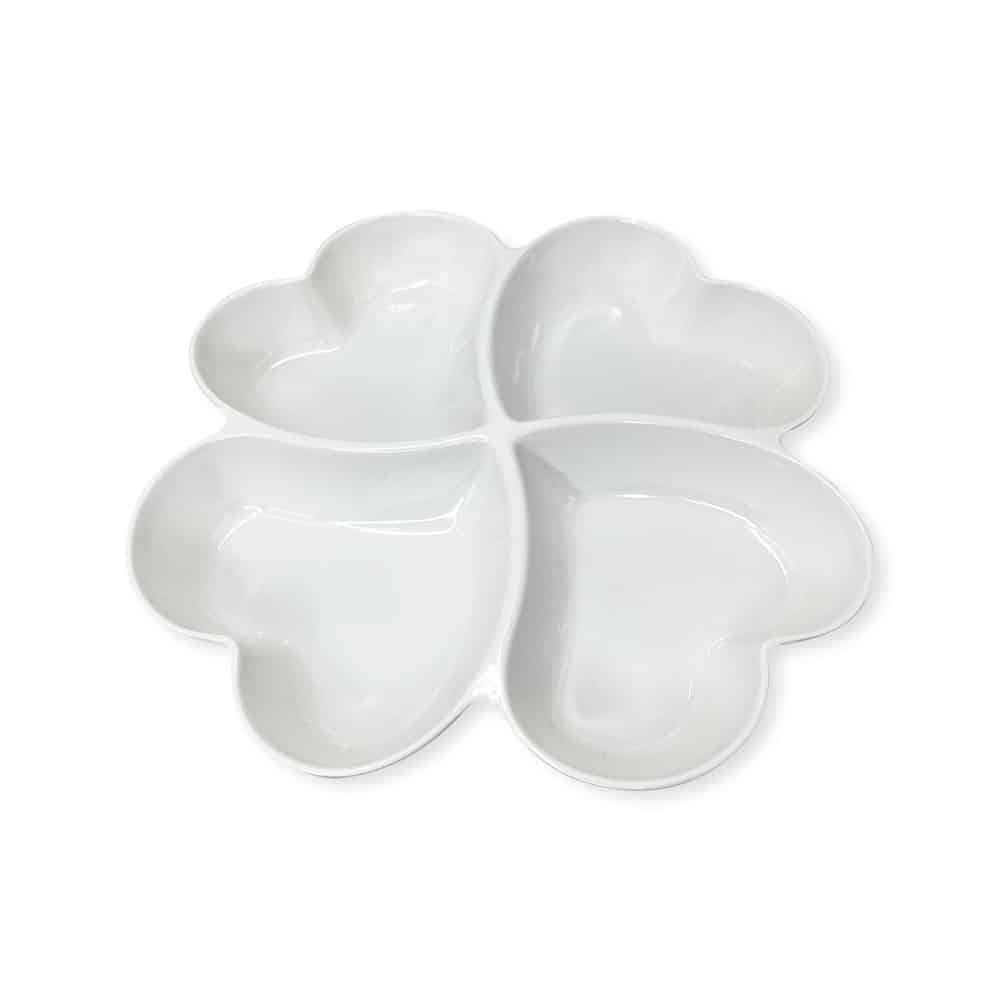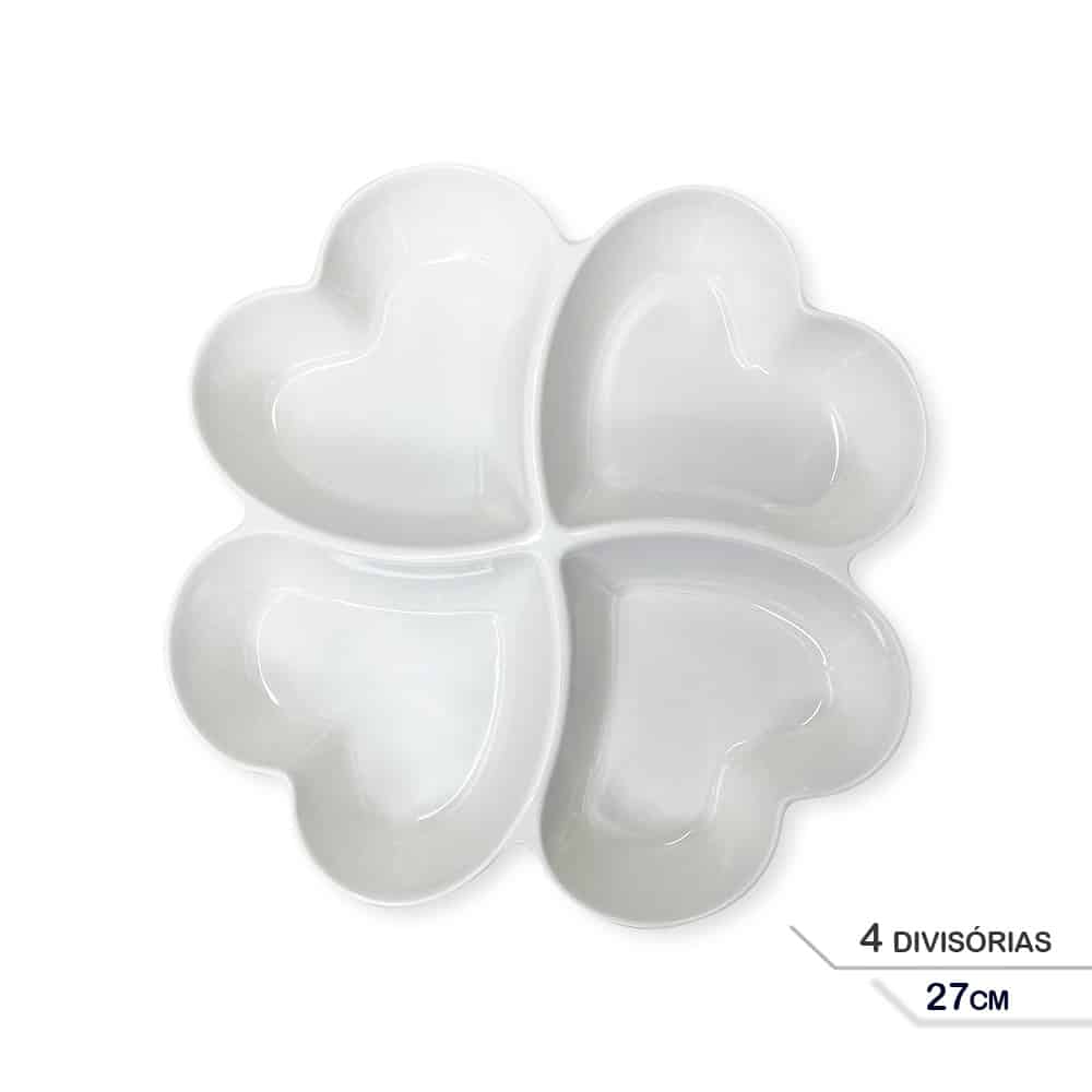 Petisqueira Coração 4 Divisórias Petisco Melamina 27cm: Essa petisqueira é perfeita quem preza pela elegância na hora de receber seus convidados em casa, fazer festas, reuniões e até mesmo num encontro a dois. Deixe sua mesa linda e charmosa, recheada com petiscos deliciosos. Pode ser utilizada para servir salgados, aperitivos, queijos e fondues Salgados e Doces. Possui 4 divisórias em formato de coração, deixando a apresentação mais elegante. Feita em Melamina traz uma maior durabilidade ao produto e fácil de higienizar.